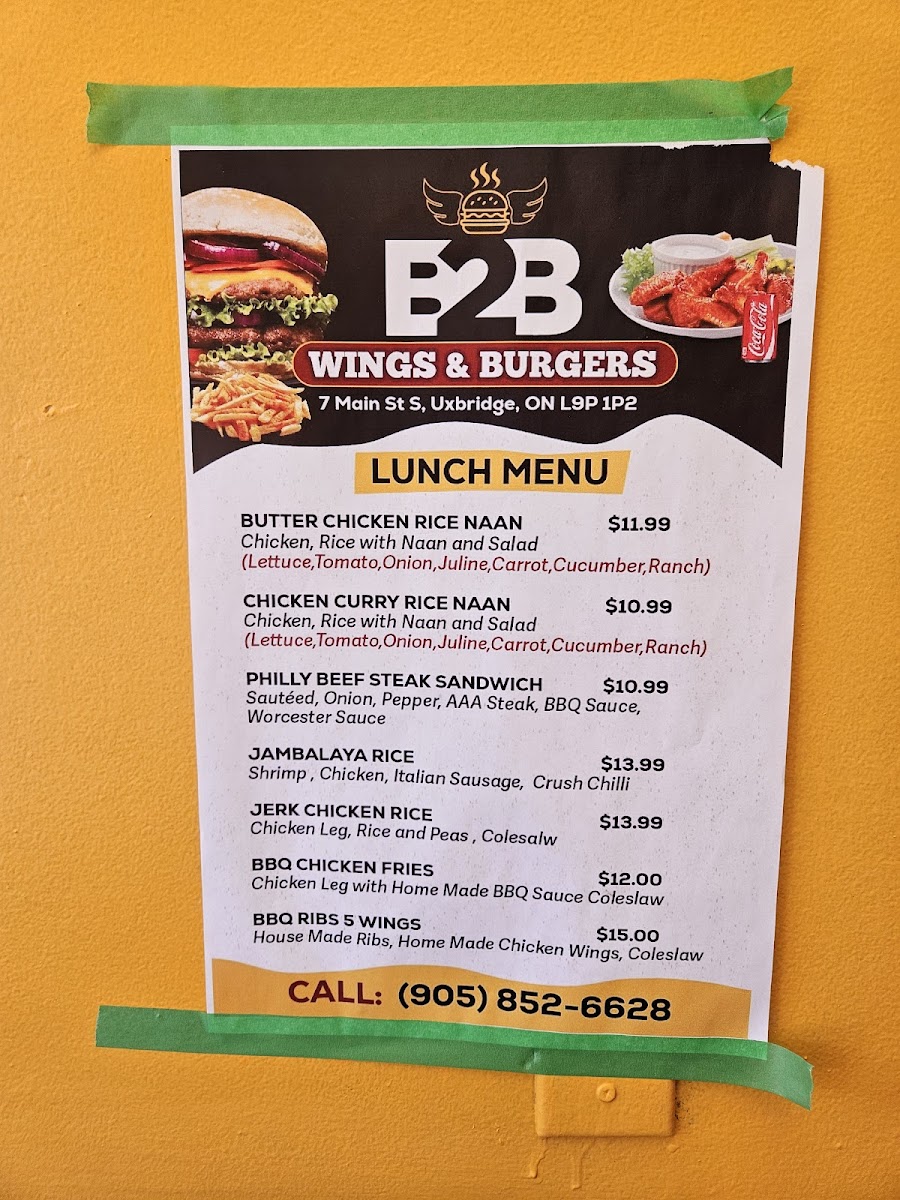 So why wait? Make your way to B2B Wings and Burgers at 7 Main St S, Uxbridge, ON, or give them a call at +1 905-852-6628. Dive into a culinary experience that not only satisfies your cravings but also leaves you eager to return!
